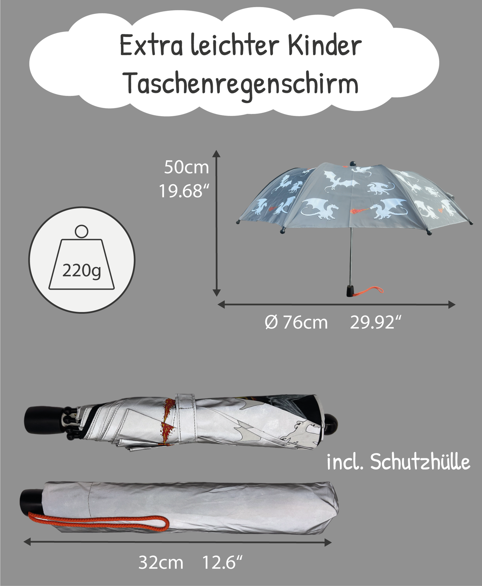 🌈 Magico gioco di colori quando è bagnato: immagina come brillano gli occhi di tuo figlio quando i draghi sull'ombrello cambiano improvvisamente colore quando piove! Questo magico ombrello per bambini trasforma ogni giorno di pioggia in un'avventura colorata e crea volti stupiti.
