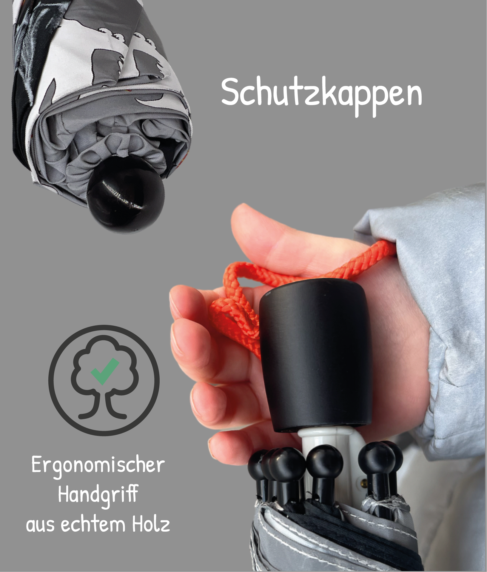 ☀️ Protezione in tutte le condizioni atmosferiche: grazie al robusto materiale in poliestere, l'ombrello offre una protezione affidabile dalla pioggia e dai dannosi raggi UV. Il manico in legno adatto ai bambini garantisce una presa salda e sicura, perfetta per le mani dei più piccoli.