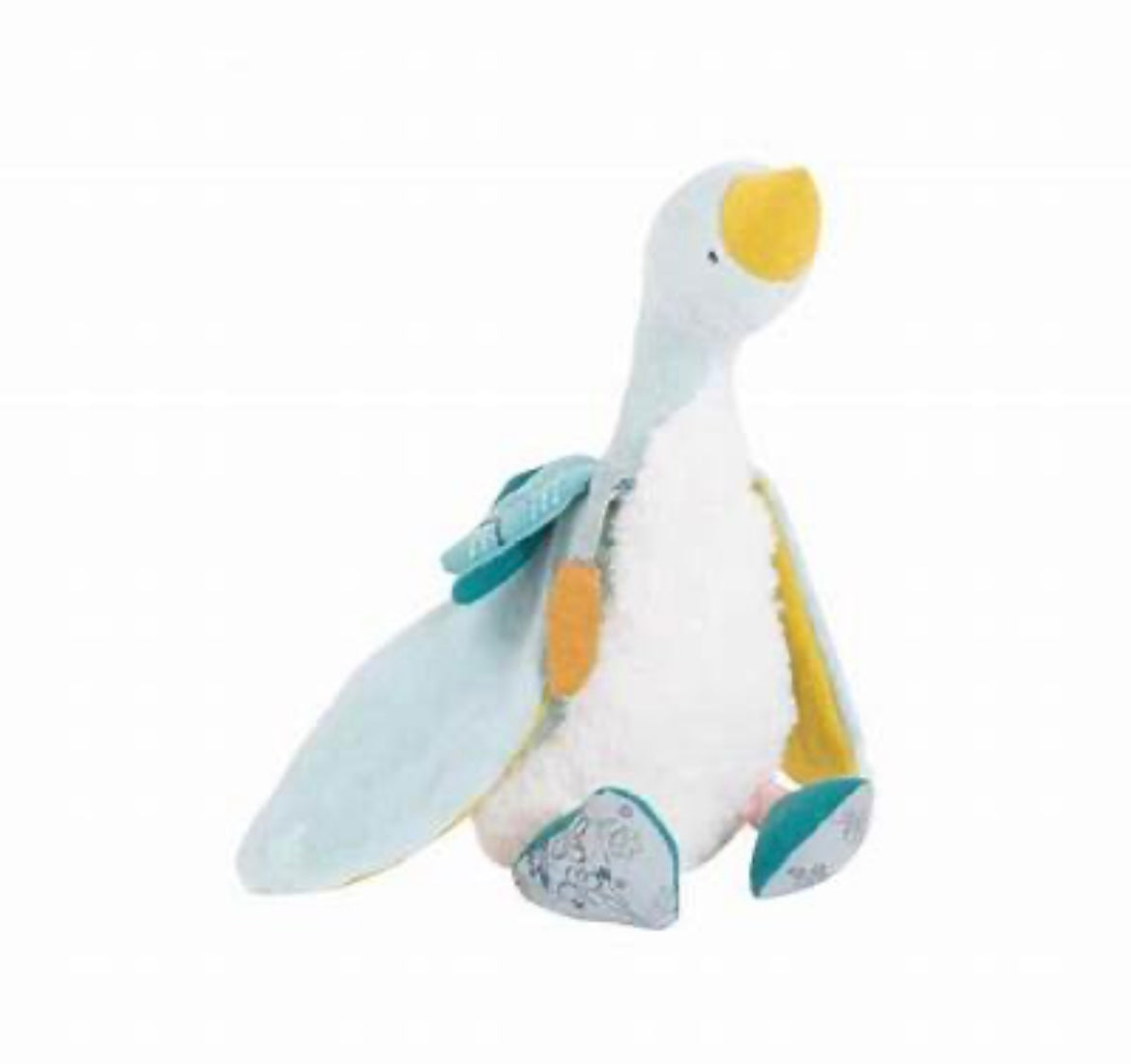 Olga e la mamma oca selvatica che coccola i suoi piccini, il bambino coccola questo pupazzo morbido e coloratissimo della collezione le voyage d’olga. Moulin roty e’ simbolo di qualita’ dei prodotti, ogni particolare e’ studiato nei dettagli. Lavabile in lavatrice a 30 gradi meglio se custodito in un tessuto. Dimensione 38cm. Adatto ai bambini di età superiore ad 1 anno.