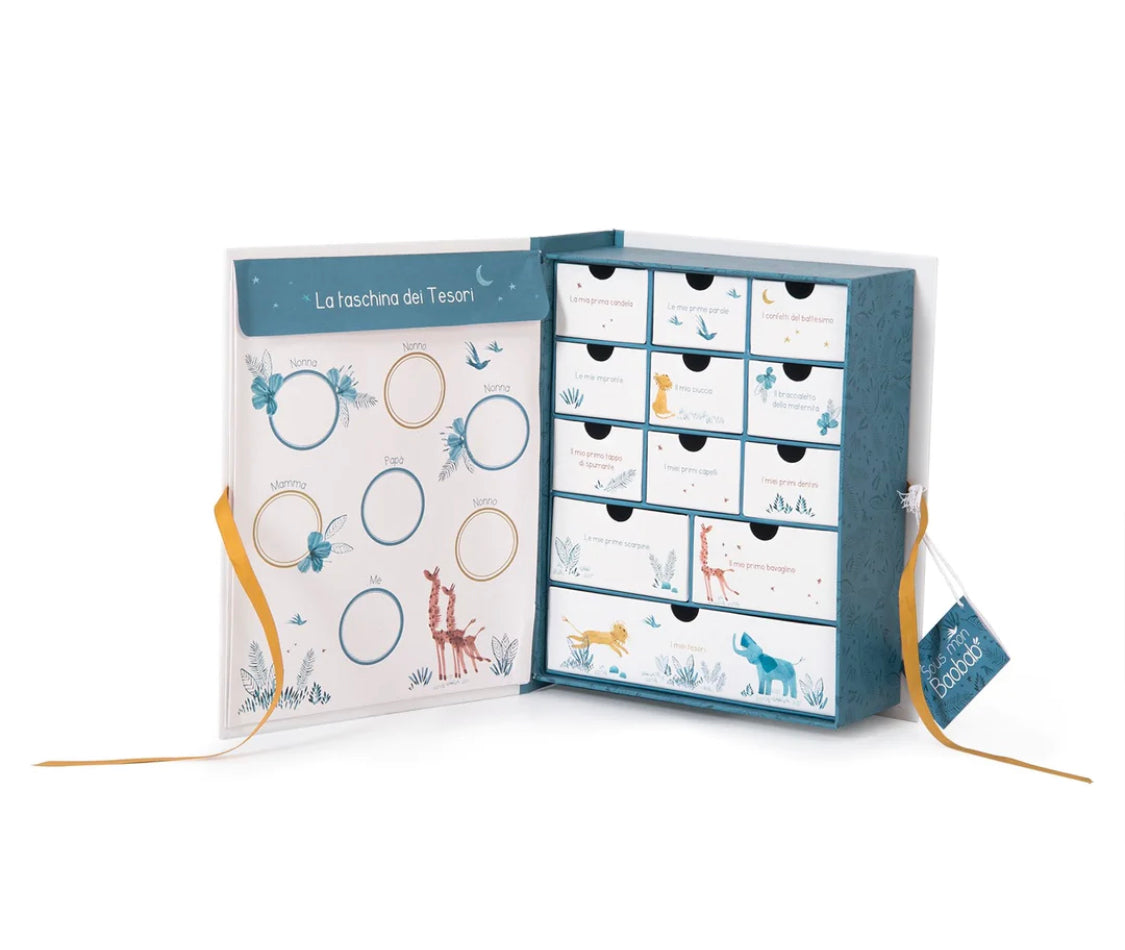 in ITALIANO di Moulin Roty è un regalo emotivo molto originale ed utile, pensato per i neonati e i loro genitori per conservare tutti i piccoli tesori del bambino.
